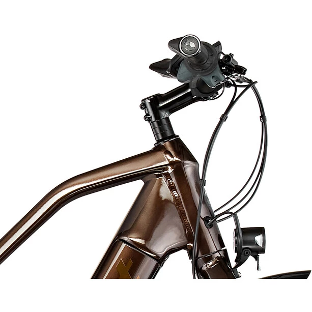 L’automatisme continu du dérailleur Enviolo et l’entraînement par courroie Gates font de l’Opal Esprit+ un vélo électrique très particulier. Les batteries PowerTube ultra-résistantes du leader du marché Bosch sont parfaitement intégrées dans le cadre. L’Opal Esprit+ est également compatible avec le Range Boost pour une portée deux fois plus grande. Il y roule sur des pneus larges et très sûrs.