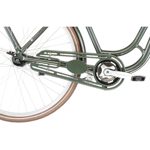 La selle large, les poignées ergonomiques et les pneus larges, qui filtrent également les bosses des pavés et des chemins de terre, sont également synonymes de confort. Pour de telles balades en ville et en campagne, les vitesses du moyeu Shimano Nexus avec un choix de trois et sept vitesses offrent le bon rapport de vitesse pour la vitesse désirée. Les engrenages sont tout aussi durables et nécessitent peu d’entretien que l’ensemble du Juicy.