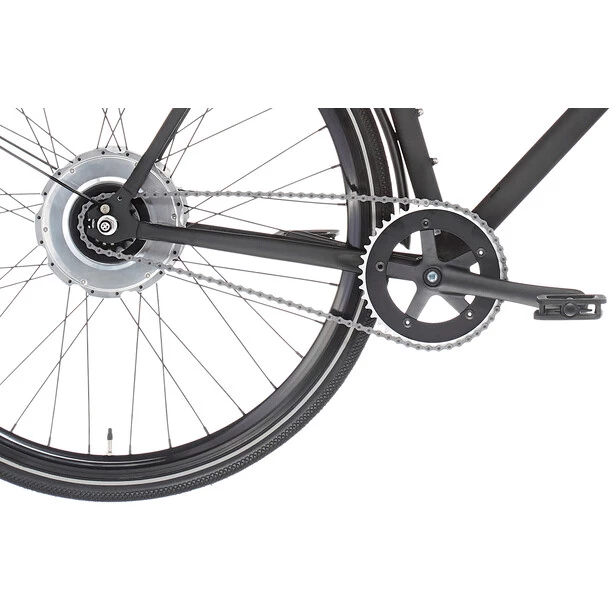 Le Fixie Inc. Backspin donne un exemple réussi de la mobilité électrique moderne en ville. Avec l’allure épurée d’un vélo singlespeed et le moteur électrique complètement caché dans le moyeu arrière, il fait tourner les têtes, suscite des visages étonnés et vous procure beaucoup de plaisir sur votre trajet à travers la ville.