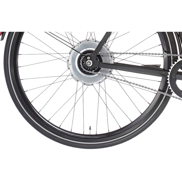 Si vous ne le saviez pas, vous ne reconnaîtriez pas le moteur Zehus. Le moteur, la batterie et le système de contrôle sont entièrement logés dans le moyeu de la roue arrière. La charge se fait par un connecteur caché dans l’essieu. L’entraînement a une puissance maximale de 250 watts jusqu’à une vitesse de 25 km/h, conformément aux dispositions légales. Vous pouvez facilement contrôler tous les paramètres du lecteur via l’application Zehus.