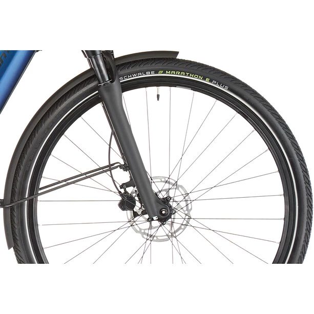 Cette bicyclette électrique polyvalente et pratique est idéale pour une utilisation quotidienne dans divers environnements. Il est doté de toutes les fonctionnalités intégrées que vous pouvez imaginer, y compris des supports, des lumières, des garde-boue et des porte-bagages – tous soigneusement conçus et construits pour que vous puissiez emballer, transporter et stocker en toute sécurité vos objets essentiels. Avec un moteur SyncDrive Core 50Nm, vous pouvez également conduire en mode Smart Assist. Cette technologie détermine l’assistance dont vous avez besoin et passe automatiquement les vitesses – afin que vous puissiez vous concentrer pleinement sur la route et votre propre expérience de conduite. La navigation embarquée est une autre caractéristique intéressante, avec un écran RideDash EVO parfaitement intégré au guidon. Les lumières intégrées qui fonctionnent jour et nuit augmentent votre sécurité en ajoutant de la visibilité sur la route. Pour une conduite plus confortable, le DailyTour E+ est équipé d’une fourche à suspension SR Suntour qui vous permet d’absorber les bosses et d’adoucir votre conduite.