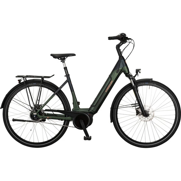 Une selle confortable de la maison Selle Royal et des poignées ergonomiques Hermanns avec serrage par vis garantissent un plaisir de conduite confortable. Ce vélo électrique de ville est en outre équipé d’une vitesse au moyeu Shimano Nexus à 5 vitesses, d’un frein à rétropédalage et d’un frein à disque Shimano puissant. Vous pouvez ainsi vous déplacer confortablement et en toute sécurité, même sur de longues distances. Et si la randonnée se prolonge jusqu’au soir, les phares et les feux arrière d’Herrmans éclairent votre itinéraire en toute fiabilité.