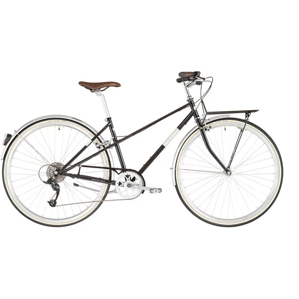 À l’époque, les vélos porteurs avec porte-bagages avant stable étaient de véritables bêtes de somme quotidiennes à une époque où tous les ménages n’avaient pas de voiture. Avec le Bricktown, Ortler poursuit le concept d’une nouvelle manière et propose aux cyclistes urbains cette machine à rouler pratique et élégante avec des emprunts classiques dans le design, afin d’opter en toute confiance et avec style pour le vélo et la piste cyclable en ville. Le conducteur ou la conductrice prend place confortablement sur la selle, garde la vue d’ensemble et, avec 9 vitesses et un équipement routier complet, reste maître du flux de la circulation. La sacoche, le sac à dos ou les courses viennent à l’avant, restent toujours en vue et permettent une conduite libérée et rapide.