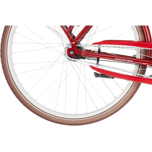 Simple, beau et tout simplement étonnamment pratique : le vélo Copenhagen de la Nordic-Line d’Ortler. Le vélo de ville rouge avec son moyeu à 7 vitesses Shimano Nexus est un compagnon fiable sur les courtes et moyennes distances dans la vie de tous les jours. Le cadre en acier courbé facile à enjamber apporte confort et élégance. Des garde-boue, un garde-chaîne et un porte-bagages de la couleur du cadre soulignent l’aspect distingué. La position assise droite sur une selle confortable, un guidon courbé et des poignées Ergo permettent une bonne vue d’ensemble dans la circulation urbaine et le confort nécessaires pour des sorties détendues. Le grand panier standard au-dessus de la roue avant fait du transport de bagages un jeu d’enfant. Montez en selle et profitez du quotidien à vélo sur l’Ortler Copenhagen.