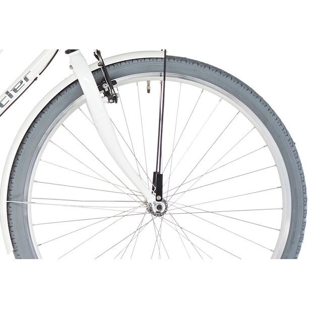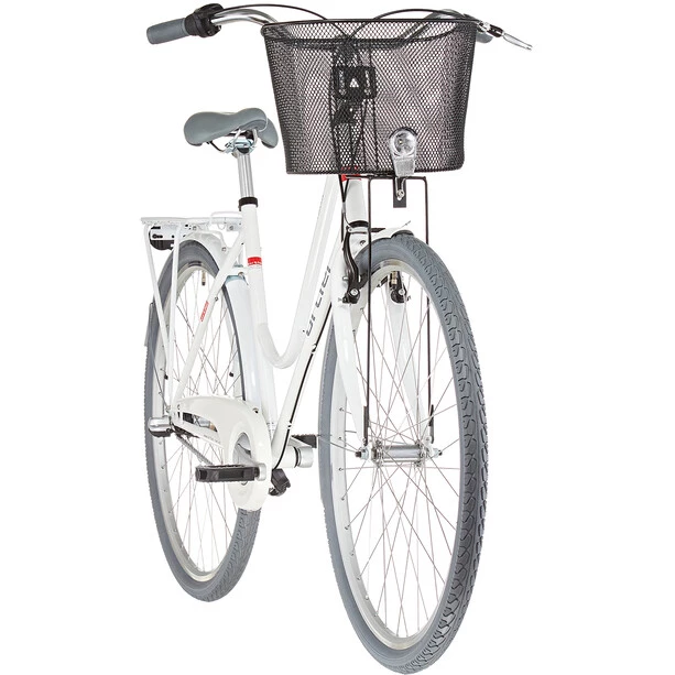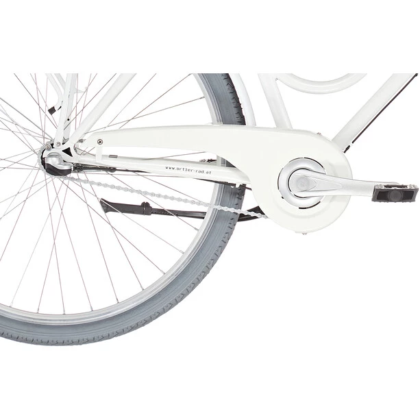 Simple, beau et tout simplement étonnamment pratique : le vélo Copenhagen de la Nordic-Line d’Ortler Le vélo de ville blanc, avec son moyeu à trois vitesses, est un compagnon fiable sur les courtes et moyennes distances de la vie quotidienne. Le cadre en acier courbé facile à enjamber apporte confort et élégance. Des garde-boue, un garde-chaîne et un porte-bagages de la couleur du cadre soulignent l’aspect distingué. La position assise droite sur une selle confortable, un guidon courbé et des poignées Ergo permettent une bonne vue d’ensemble dans la circulation urbaine et le confort nécessaires pour des sorties détendues. Le grand panier standard au-dessus de la roue avant fait du transport de bagages un jeu d’enfant. Montez en selle et profitez d’un quotidien simplifié : Ortler Fjaeril