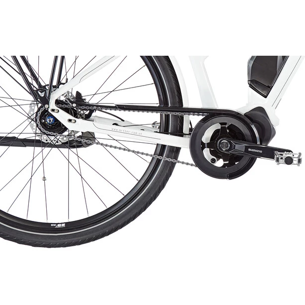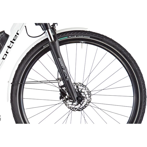 L’Ortler Bern est un vélo électrique urbain haut de gamme de la dernière génération, équipé d’un puissant moteur central Shimano Steps E-5000. En plus de son entraînement électrique moderne, le Bern convainc par un équipement détaillé bien pensé et misant sur la longévité. Le choix des vitesses est assuré par un dérailleur Shimano Nexus à 7 vitesses, le freinage est assuré par des freins à disque hydrauliques Shimano MT200, qui garantissent le bon ralentissement à tout moment et par tous les temps. Les pneus Schwalbe Energizer Plus, avec leur excellente protection anti-crevaison, garantissent un grand confort de conduite, même sur les chemins de terre et de forêt.
