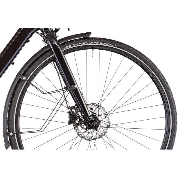 Leurs exigences les plus folles sont satisfaites à la perfection grâce aux pneus rapides Marathon Supreme de Schwalbe, aux excellentes poignées d’Ergon GP1, au porte-bagage Racktime et à l’éclairage avant Lumotec Avy par Busch & Müller.