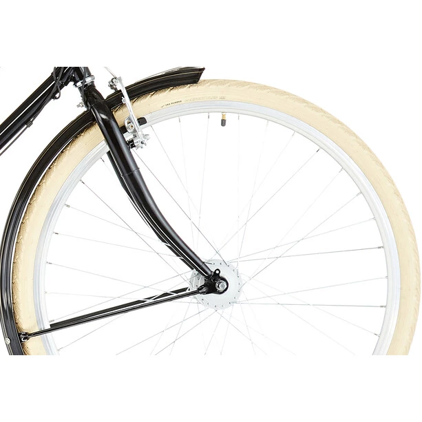 L’Ortler Van Dyck s’adresse à tous ceux qui recherchent un vélo moderne dans le style du bon vieux « vélo hollandais. Le slogan était clair : Simplicité et réduction à l’essentiel pour réaliser un vélo hollandais avec une finition de haute qualité à un prix attractif. La peinture en poudre résistante aux chocs scelle de manière fiable le cadre en acier à la finition soignée. L’absence de composants sensibles à l’usure et la vitesse au moyeu Shimano Nexus à 3 vitesses avec frein à rétropédalage font de l’Ortler Van Dyck un compagnon fidèle pour les années à venir. Le tout est complété par une dynamo de moyeu Shimano fiable et un feu de position arrière moderne à LED. L’Ortler Van Dyck devient ainsi le compagnon idéal dans la vie quotidienne en ville.