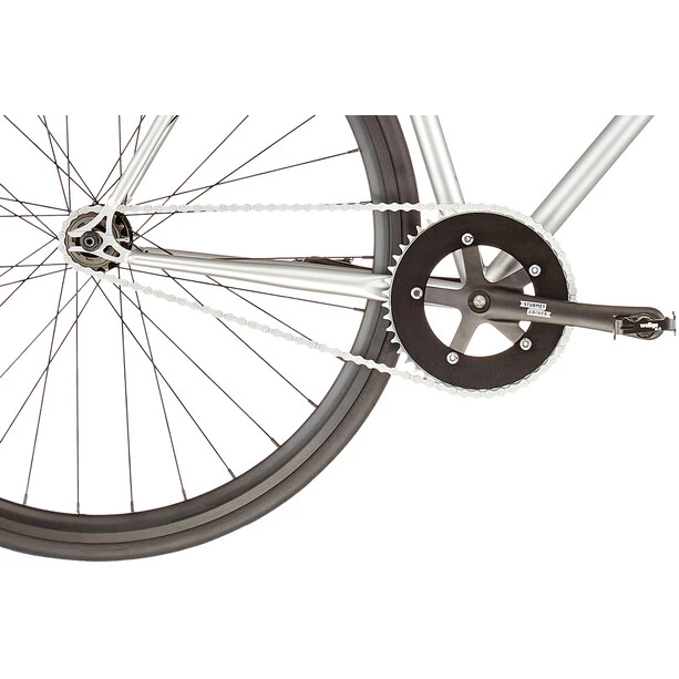 Quel que soit ton choix, Fixed Gear ou Single Speed, les freins classiques sur jante à l’avant et à l’arrière garantissent l’arrêt de ton vélo en cas de besoin.