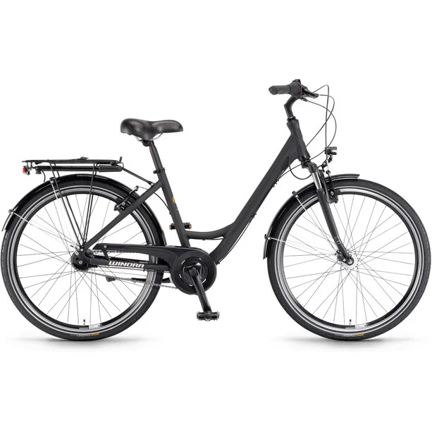 Nous voulons nous sentir à l’aise. Même à vélo. Outre le désir de bouger, de faire du sport et de relever des défis, il y a aussi une aspiration à la simplification. Les vélos de ville confort séduisent par leur maxime : autant que nécessaire et aussi peu que possible. Ce qui rend le WINORA Hollywood si unique ? Sans fioritures inutiles, ce vélo de confort allie un look chic à des composants fiables. Le moyeu à vitesses intégrées Shimano et ses 7 vitesses te permettront de rouler en douceur et avec un minimum d’entretien. Les freins en V et le frein à rétropédalage garantissent sécurité et confort.