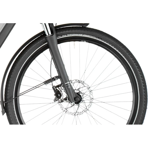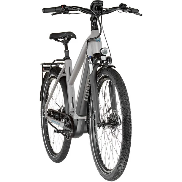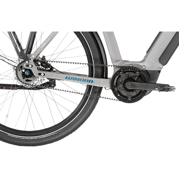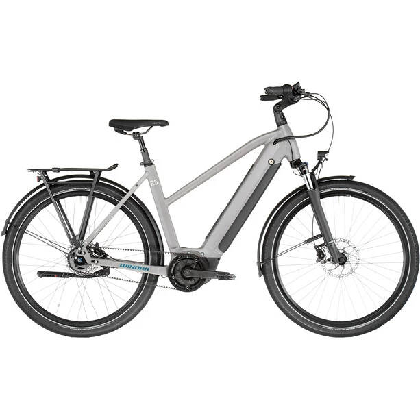 Un design classique et bien pensé, une batterie intégrée de manière esthétique dans le cadre et un entraînement par courroie facile à entretenir et nécessitant peu de maintenance : Le nouveau vélo électrique WINORA Sinus R5f avec roue libre est un vélo polyvalent pour se rendre au travail, faire du shopping en ville ou partir tranquillement en week-end. Le puissant moteur Bosch Performance Line avec un couple allant jusqu’à 65Nm te permet d’accélérer de manière sportive et la batterie de 625Wh t’offre suffisamment de réserves d’énergie pour chaque projet. Les composants de changement de vitesse et de freinage de haute qualité de Shimano garantissent un plaisir de conduite et une sécurité sans faille. Le Sinus R5f est disponible en trois modèles : pour hommes et femmes, ainsi qu’en version confortable à cadre bas